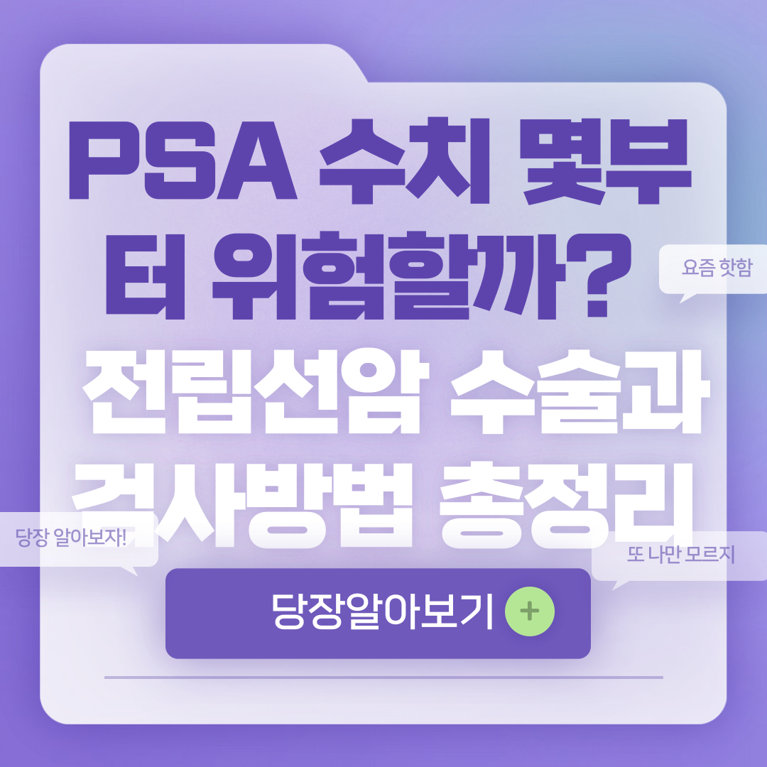 PSA(전립선 특이 항원, Prostate-Specific Antigen)는 전립선에서 생성되는 단백질로, 혈액을 통해 측정합니다. 정상적인 경우 PSA 수치는 4ng/mL 이하이며, 이 수치를 초과할 경우 전립선암의 가능성을 고려해야 합니다.